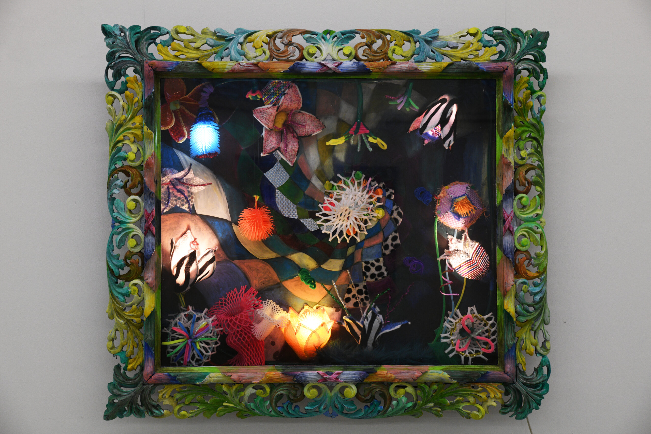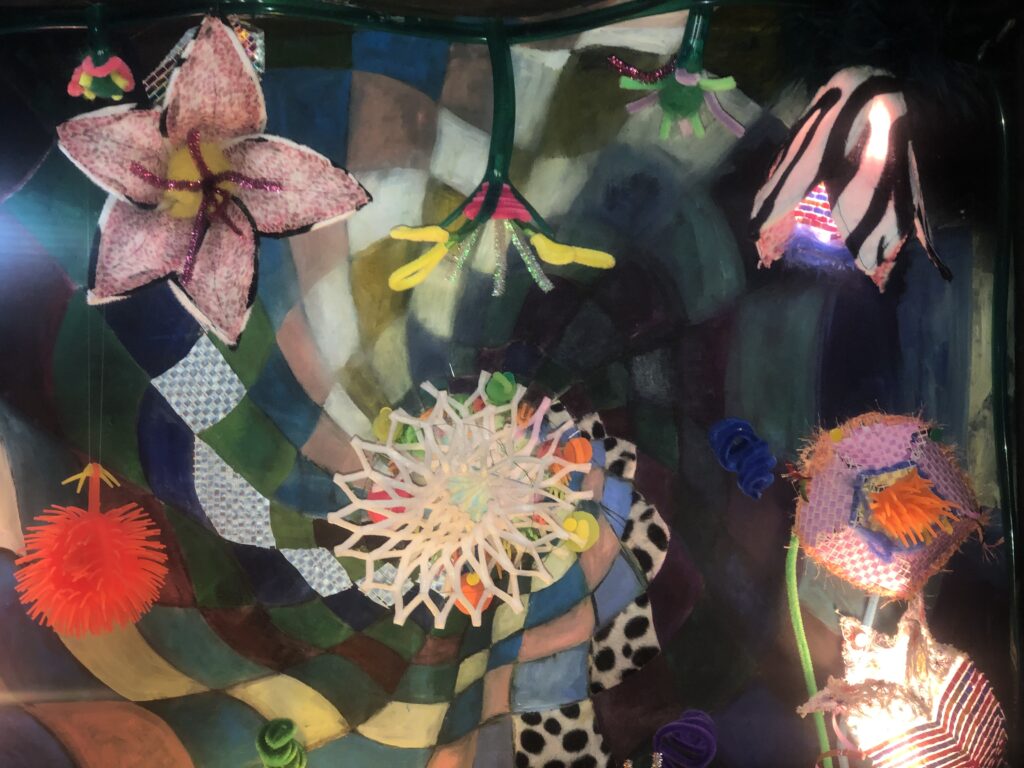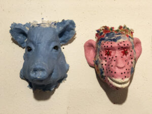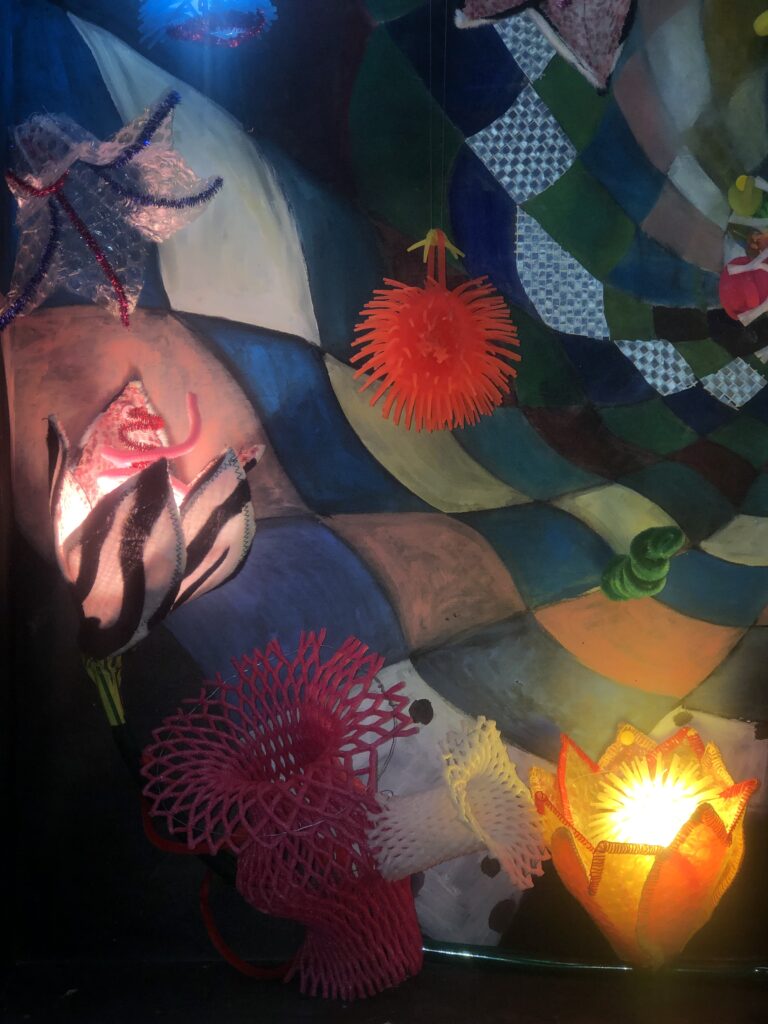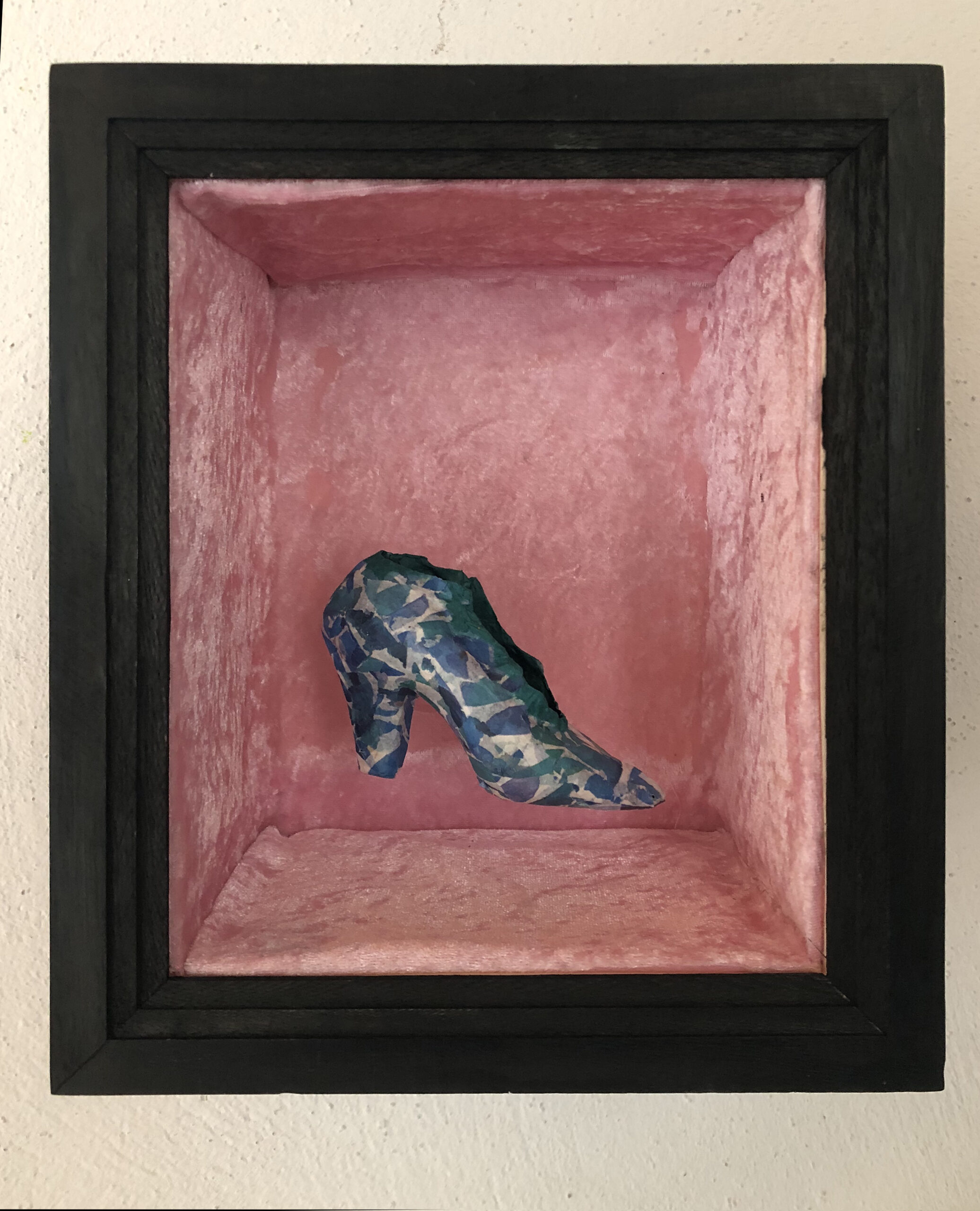 Skulpturen/Objektbilder Grüße aus dem Plastotär, Objektkasten 106 x 120 cm Schwebeschuhstand, Objektkasten Weggefährten Viertelfrau